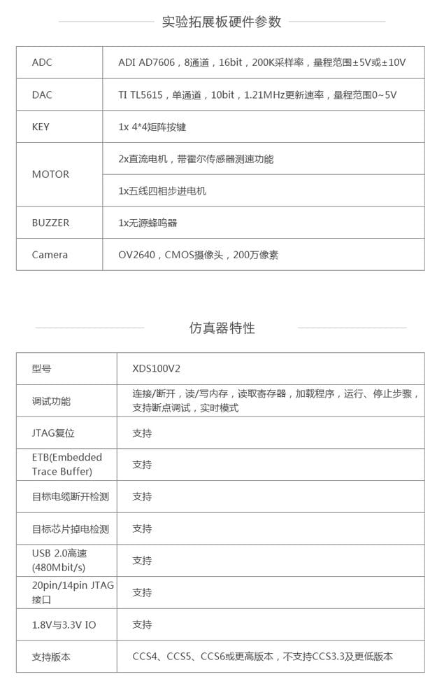 ? 實驗拓展板支持:步進電機、直流電機(配霍爾傳感器)、4*4矩陣鍵盤、200萬CMOS數(shù)字攝像頭、蜂鳴器、8路