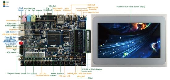 DE1-SoC-MTL2 開發(fā)板提供的一體化嵌入式解決方案結合了液晶觸控面板和數字圖像模塊, 給嵌入式開發(fā)人員的的多媒體應用開發(fā)提供了一個擁有無法匹敵處理性能的理想平臺。開發(fā)人員將會從使用 FPGA 嵌入式處理系統中受益,比如可以降低設計風險,避免產品過時,設計可重復利用,而且通過集成強大的圖形引擎到 FPGA 降低了 BOM 成本。