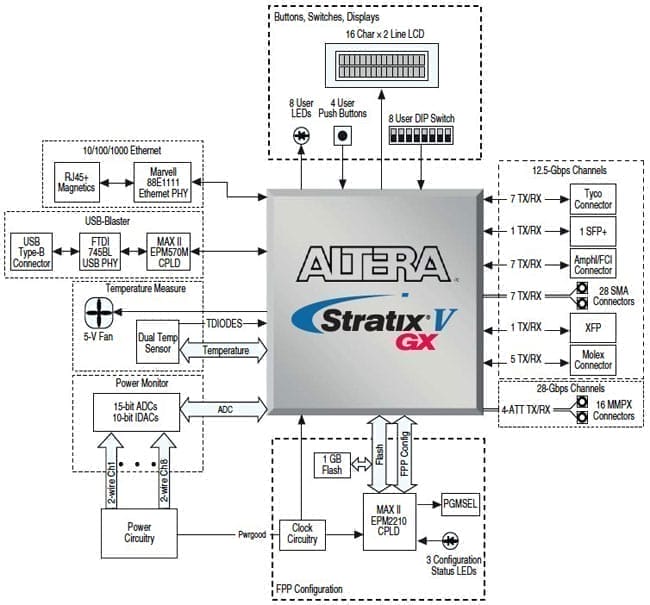 Stratix V GX Transceiver Signal Integrity Development Board Block Diagram