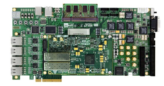 DUAL XAUI TO SFP+ HSMC BOARD connects to the Altera DE4 FPGA Development Board