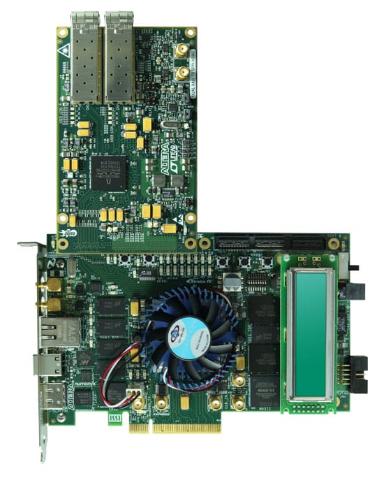 DUAL XAUI TO SFP+ HSMC BOARD connects to the Startix IV GX FPGA Development Board