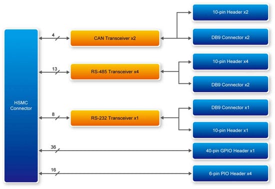 ICB-HSMC 是專為工業(yè)通信應(yīng)用設(shè)計(jì)的。它支持經(jīng)由 HSMC 實(shí)現(xiàn)的 RS-232, RS-485 和 CAN(區(qū)域網(wǎng)絡(luò)控制器)。基于現(xiàn)場(chǎng)總線的數(shù)據(jù)通信網(wǎng)絡(luò),采用串行通信協(xié)議規(guī)范,在工業(yè)自動(dòng)化或者儀器儀表領(lǐng)域里可用作實(shí)時(shí)可靠的分布式控制。ICB – HSMC 子板有提供 2 個(gè)端口用于 RS-485,2 個(gè)端口用于 CAN,還有 1 個(gè)端口用于 RS – 232。此外,我們還有提供 1 個(gè) GPIO和 4 個(gè) PIO 連接器以滿足用戶可編程的輸入輸出需求