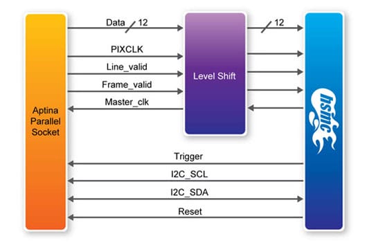 - Allows trigger signal to set shutter speed for Aptina sensor
