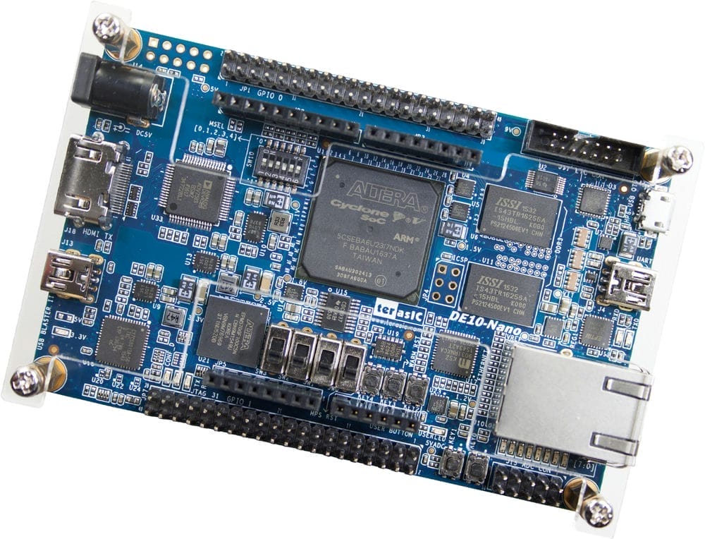 DE10-Nano SoC FPGA 開發(fā)板:帶 ARM 處理器,可運(yùn)行 Linux 系統(tǒng);集成了 110K 邏輯單元,可以實(shí)現(xiàn)邏輯控制。另外還有串口,網(wǎng)口,GPIO 口等外圍電路接口。
