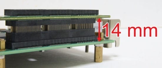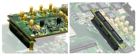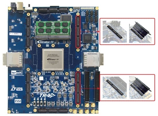 All FPGA host boards equipped with female HSMC connector can use the THCB-HMF2 to increase the height space between host and daughter cards. Some connection examples are shown below: