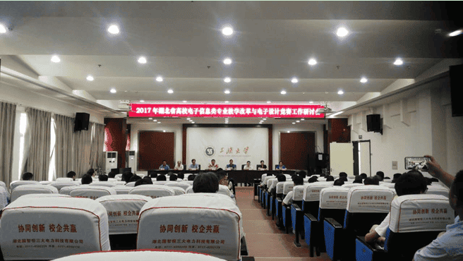 7月12-14日,2017年全省高校電子信息類專業(yè)教學(xué)改革與電子設(shè)計競賽工作研討會在三峽大學(xué)電氣科學(xué)樓702會議室隆重召開。學(xué)校相關(guān)部門領(lǐng)導(dǎo)劉士平出席開幕式并致歡迎辭,全國大學(xué)生電子設(shè)計競賽湖北賽區(qū)專家顧問趙茂泰教授等全省各院校專家代表、湖北鑫合欣科技有限公司總經(jīng)理孫建飛等出席會議,會議由專家組組長田茂教授主持。